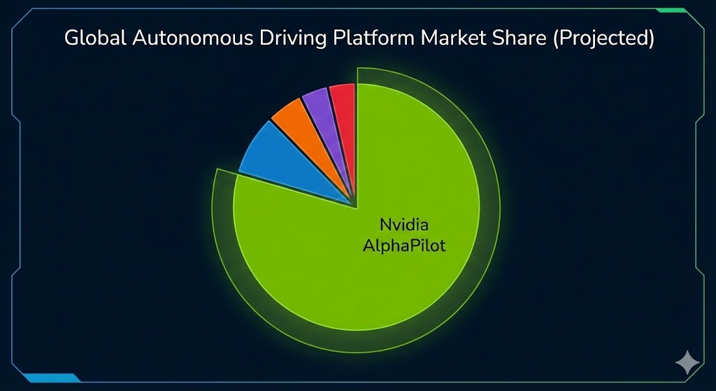 이 그래프는 미래 자율주행 플랫폼 시장 점유율을 예측한 것입니다. 알파마요의 기술적 우위와 강력한 파트너십을 고려할 때, 엔비디아가 시장을 주도할 가능성이 매우 높다는 것을 알 수 있습니다.