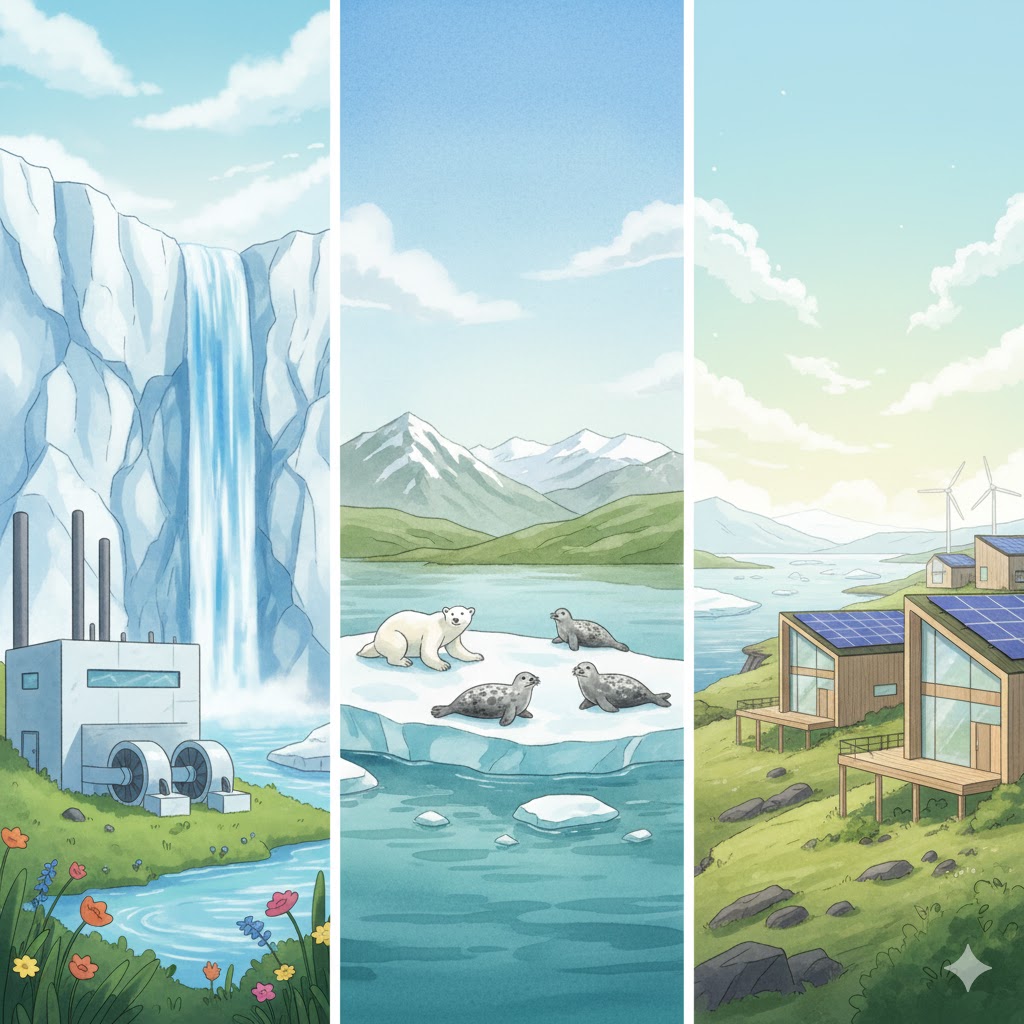 무분별한 개발보다는 지속 가능한 발전 모델을 제시하는 것이 진정한 문제 해결의 핵심입니다. 그린란드를 단순히 '자원의 창고'로 보는 것이 아니라, 재생 에너지(수력, 풍력 등)의 거점으로 활용하고 환경을 보존하며 가치를 창출하는 창의적인 시각이 필요합니다.