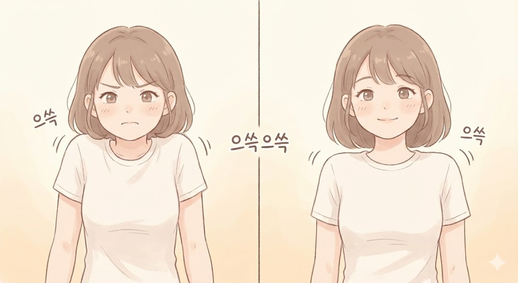2. 어깨 으쓱하기: 어깨를 귀까지 잔뜩 올렸다가 '툭' 하고 힘을 빼며 떨어뜨리는 동작을 반복해 보세요. 승모근의 긴장을 푸는 데 최고랍니다.