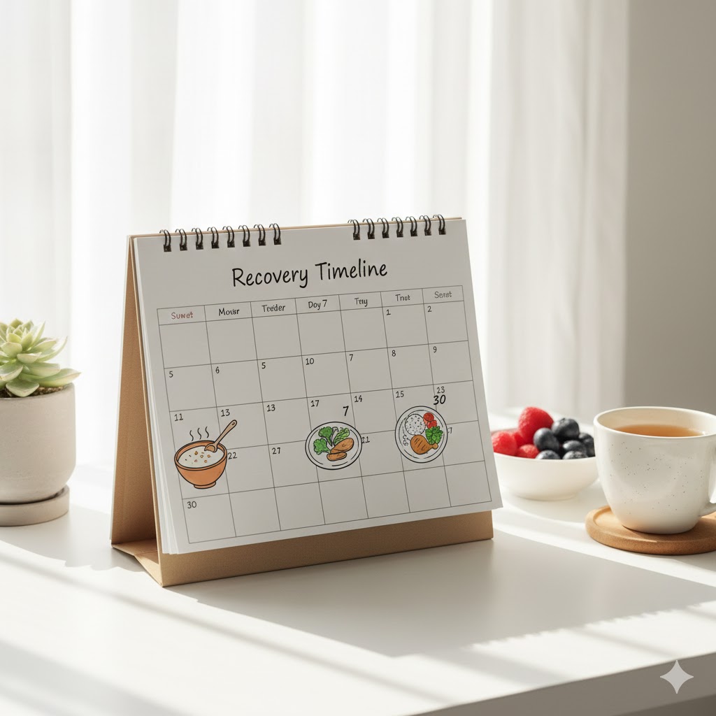 - 수술 직후 2주: 죽이나 부드러운 반찬 위주로 드세요.