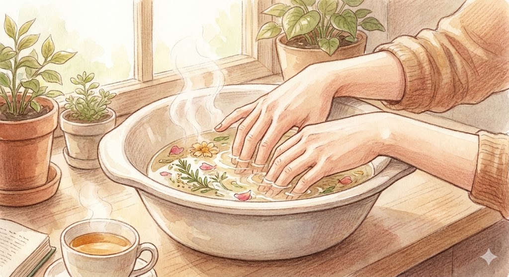 손가락 관절이 뻣뻣할 때는 따뜻한 물에 손을 담그고 부드럽게 주먹을 쥐었다 펴는 스트레칭을 수시로 해주세요. 관절의 유연성을 유지하는 데 큰 도움이 됩니다.