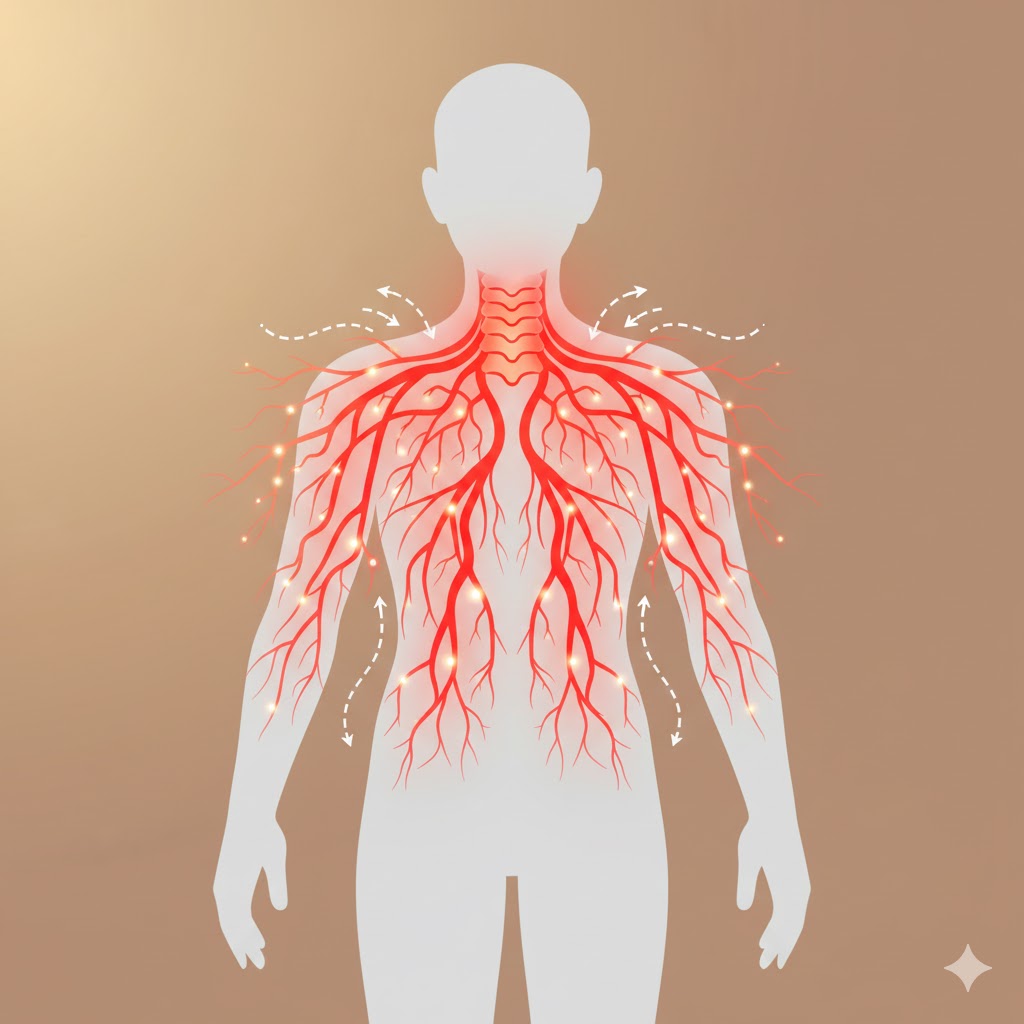 "손이 자꾸 저려서 혈액순환 개선제를 먹고 있어요."라고 하시는 분들, 잠깐 멈춰주세요! 손과 팔의 저림 증상은 목디스크의 대표적인 신경학적 증상 중 하나입니다. 목에서 뻗어 나온 신경은 팔을 타고 손끝까지 연결되어 있거든요.