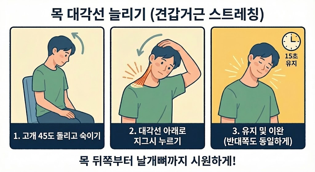 목 대각선 늘리기 (견갑거근 스트레칭)