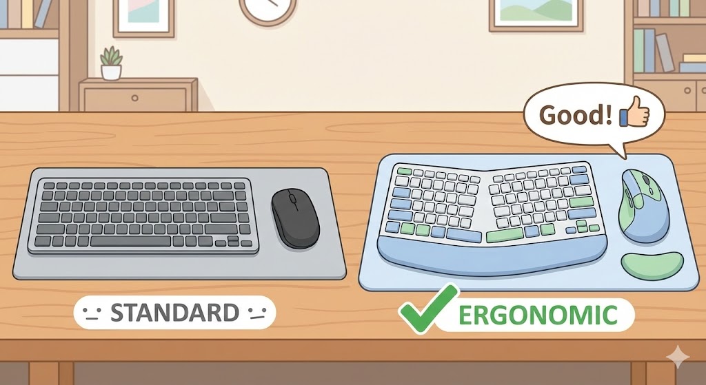 손목과 손가락의 각도를 자연스럽게 유지해주는 인체공학 키보드나 버티컬 마우스를 사용해보세요. 스마트폰을 사용할 때는 한 손으로 받치고 다른 손가락으로 터치하거나, 거치대를 활용해 손가락에 가해지는 무게 부담을 줄여주는 것이 좋습니다.