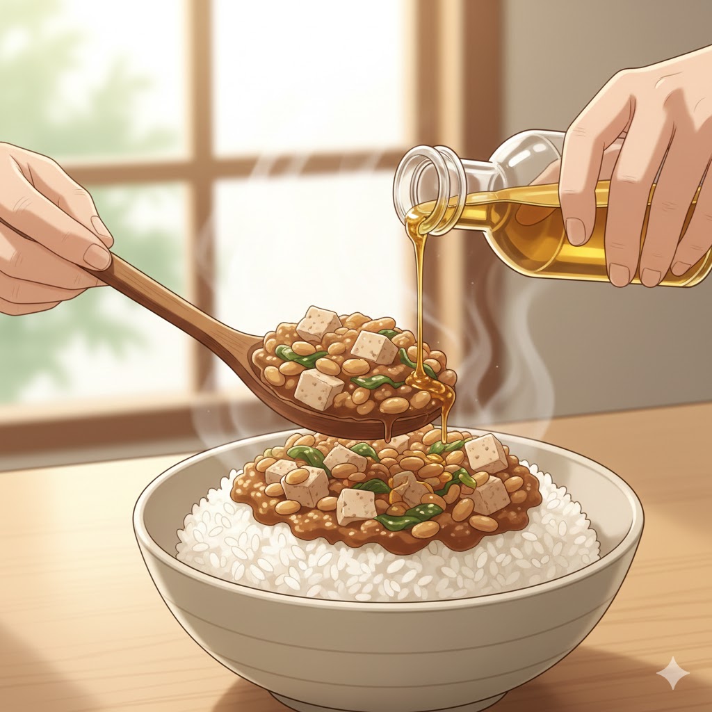 잘 끓인 청국장 하나면 다른 반찬이 필요 없죠. 갓 지은 하얀 쌀밥 위에 청국장을 한국자 듬뿍 떠서 올리고, 참기름 한 방울 톡 떨어뜨려 쓱쓱 비벼 드셔보세요.