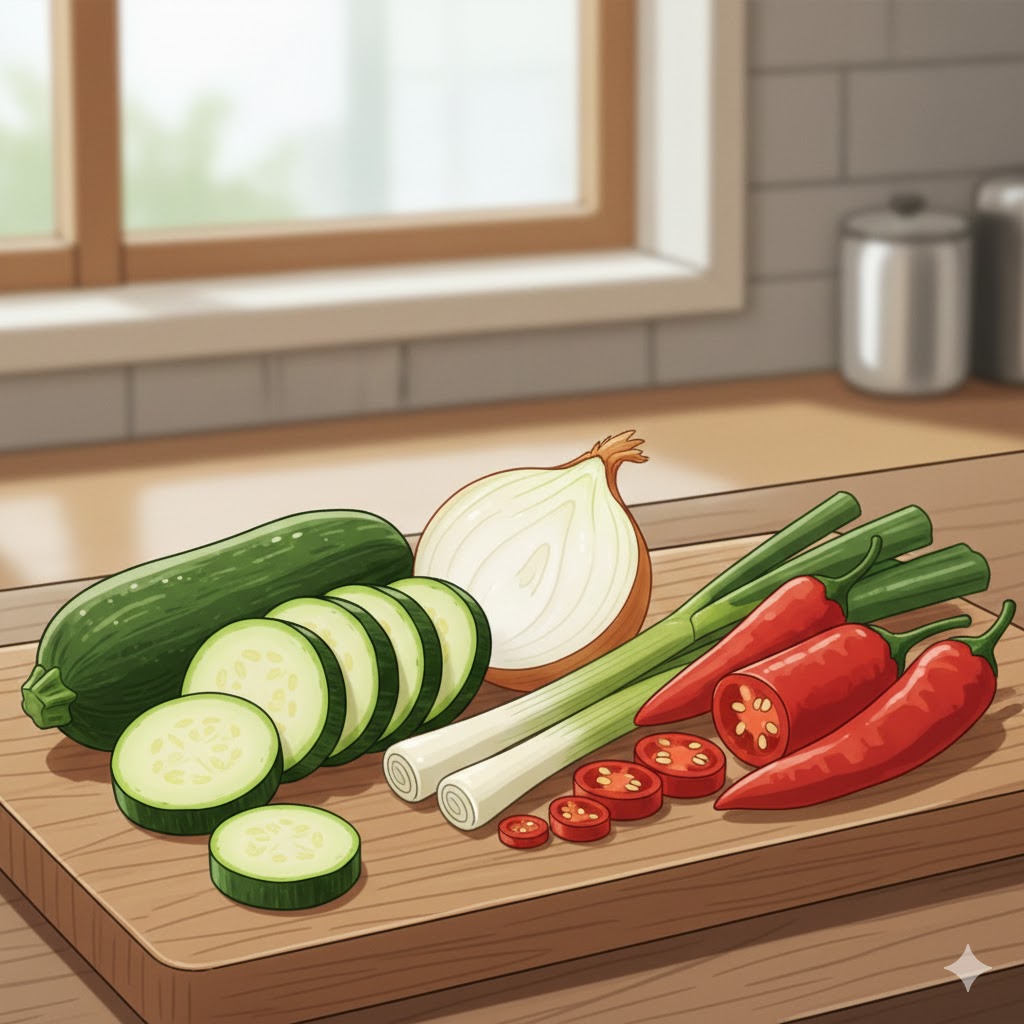 쌀뜨물의 전분질은 청국장의 콩 단백질과 어우러져 국물을 걸쭉하고 부드럽게 만들어주는 일등 공신이랍니다. 멸치는 내장을 제거하고 마른 팬에 살짝 볶아 비린내를 날린 뒤 사용해 주세요. 육수가 준비되는 동안 채소를 손질해 볼까요?