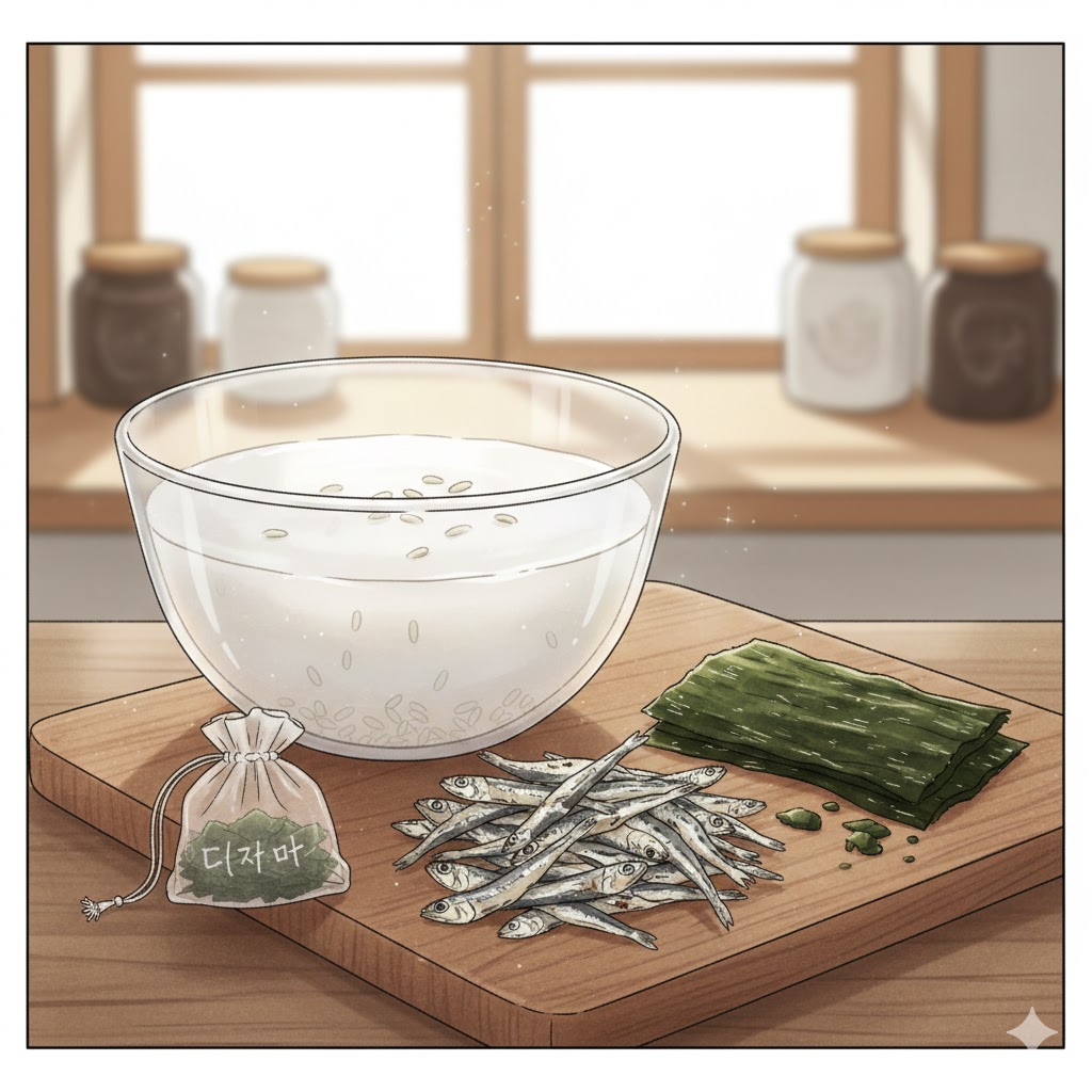모든 찌개 요리의 시작은 육수에서 결정된다고 해도 과언이 아니에요. 맹물로 끓여도 청국장 자체의 맛이 좋으면 괜찮지만, 훨씬 더 깊고 진한 맛을 원하신다면 **'쌀뜨물'**과 **'멸치 다시마 육수'**를 추천해요.