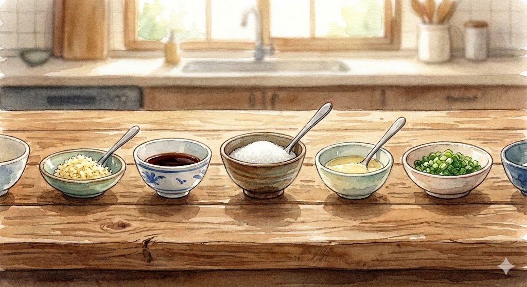 - 다진 마늘 2스푼, 설탕 2스푼, 매실청 1스푼: 단맛과 풍미를 조절합니다.