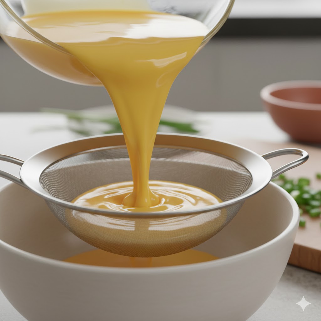 먼저 계란은 특란 기준으로 4~5개 정도가 가장 적당해요. 여기서 중요한 포인트는 **'알끈 제거'**와 **'체에 거르기'**입니다. 계란을 푼 뒤 체에 한 번 걸러주면 흰자와 노른자가 완벽하게 섞이고, 익었을 때 식감이 카스텔라처럼 부드러워져요. 귀찮더라도 이 과정을 거치면 퀄리티가 확연히 달라진답니다.