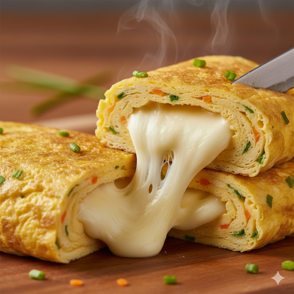 기본기가 잡혔다면 다양한 응용이 가능해요. 계란물에 다진 당근, 대파, 양파를 넣으면 식감과 영양을 챙길 수 있고, 가운데에 모짜렐라 치즈나 체다 치즈를 넣으면 아이들이 좋아하는 치즈 계란말이가 됩니다. 명란젓을 넣으면 고급스러운 술안주가 되죠.