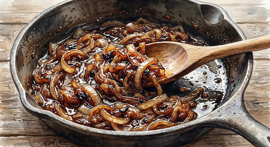 양파가 진한 갈색을 띠고 잼처럼 꾸덕꾸덕해질 때까지 볶아주세요. 이 '양파 잼'이 카레 루와 만났을 때 비로소 전문점 맛을 내는 베이스가 완성됩니다.