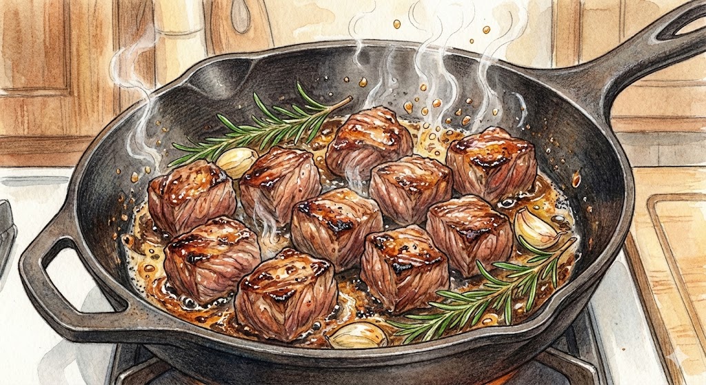 고기는 바로 물에 넣고 끓이는 게 아니라, 먼저 팬에 구워 '마이야르 반응'을 일으켜야 합니다. 고기 표면이 노릇노릇해질 때까지 센 불에 볶아 육즙을 가두고 고소한 맛을 끌어올려 주세요. 이때 후추와 맛술을 살짝 넣어 잡내를 잡아주는 것도 잊지 마세요.