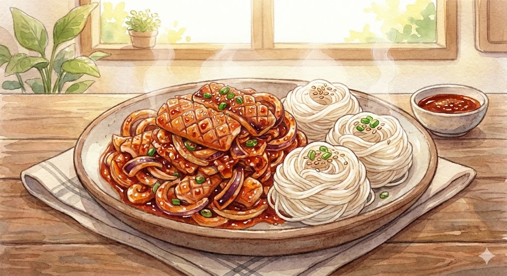 오늘 저녁, 매콤한 오징어볶음으로 하루의 스트레스를 확 날려버리시는 건 어떨까요? 여러분의 식탁이 맛있는 즐거움으로 가득 차기를 바랍니다.