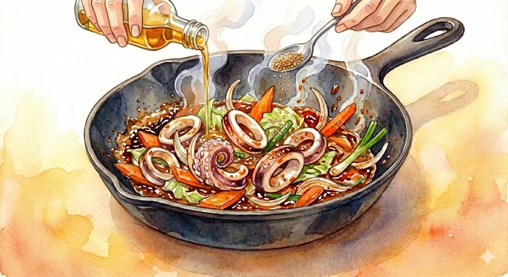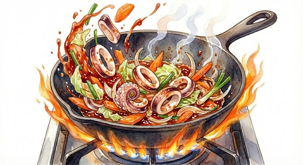 오늘은 누구나 좋아하는 국민 반찬, 오징어볶음을 물기 없이 맛있게 만드는 황금레시피를 소개해 드렸어요. 생각보다 어렵지 않죠? '파기름, 설탕 먼저, 그리고 센 불!' 이 세 가지만 기억하신다면 여러분도 볶음 요리의 고수가 될 수 있어요.