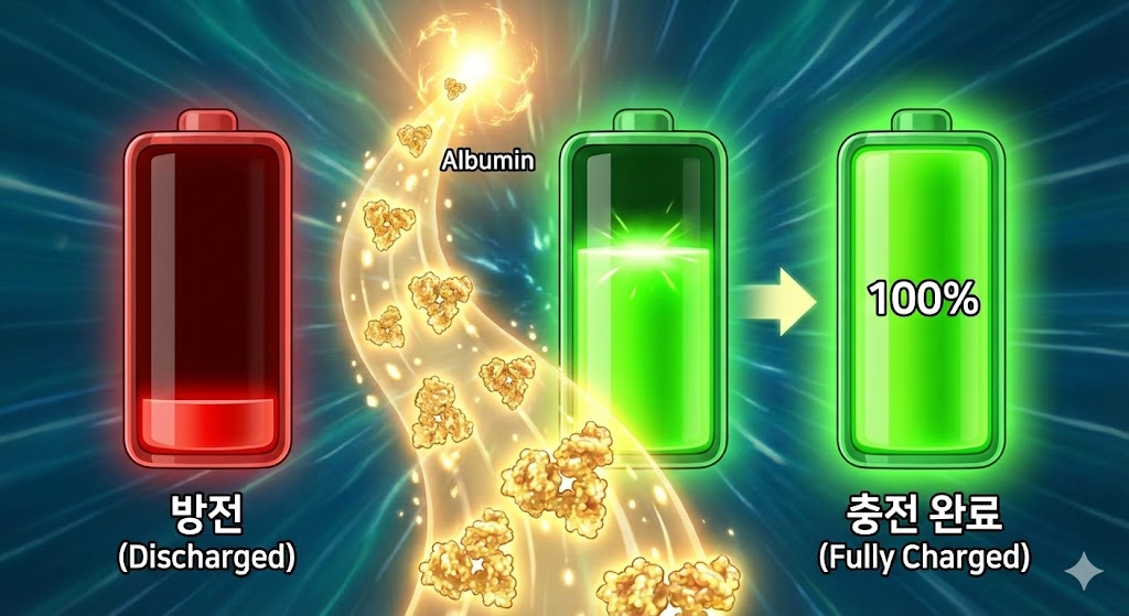 더욱 놀라운 것은 해독 작용입니다. 우리 몸 대사 과정에서 생기는 독성 물질이나 찌꺼기들을 알부민이 흡착하여 간으로 운반하고, 간에서 이것들을 분해하여 배설할 수 있도록 돕습니다. 즉, 알부민이 충분해야 영양소는 구석구석 전달되고, 노폐물은 깨끗하게 청소되는 것이죠.