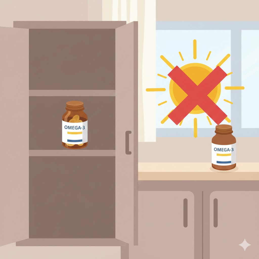 아무리 좋은 오메가3라도 제대로 먹지 않으면 소용이 없겠죠? 오메가3는 지방산의 일종이므로 공복보다는 식사 후, 특히 점심이나 저녁처럼 어느 정도 지방이 포함된 식사 후에 섭취하는 것이 흡수율을 높이는 방법입니다. 또한 산패되기 쉬운 성질이 있으므로 직사광선을 피해 서늘한 곳에 보관해야 합니다.