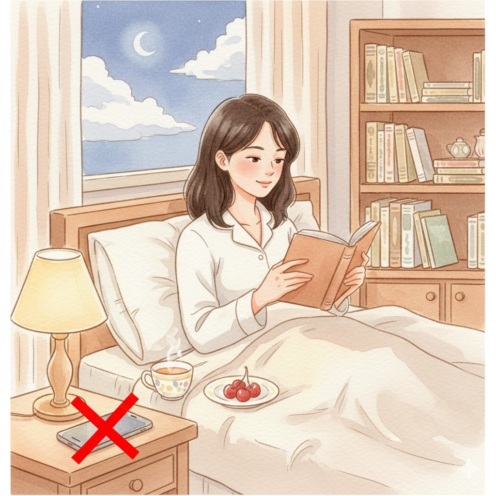 - 트립토판 섭취: 멜라토닌의 재료가 되는 트립토판이 풍부한 음식(우유, 바나나, 견과류, 체리 등)을 챙겨 드세요.