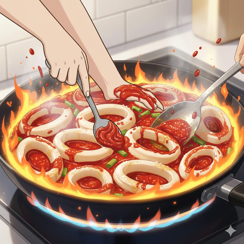 매콤하고 쫄깃한 식감이 일품인 오징어볶음, 생각만 해도 군침이 돌지 않으세요? 하지만 막상 집에서 만들려고 하면 생각보다 맛을 내기가 쉽지 않죠. 센 불에 볶았는데도 물이 흥건하게 생겨서 볶음이 아니라 찌개처럼 되어버리거나, 양념이 겉돌아 싱거운 맛 때문에 실망하신 경험이 한 번쯤 있으실 거예요.