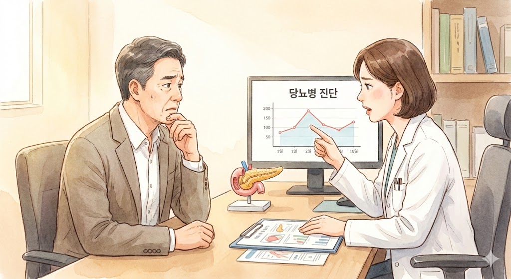 가족력이 없고 비만도 아닌데 갑자기 당뇨 판정을 받았다면, 이는 단순한 대사 질환이 아니라 췌장암의 전조증상일 가능성이 있습니다. 특히 50세 이후에 갑자기 당뇨가 생겼다면 췌장 정밀 검사를 받아보는 것이 좋습니다. 당뇨와 췌장암은 서로 밀접하게 연결되어 있다는 사실, 꼭 기억해 주세요.