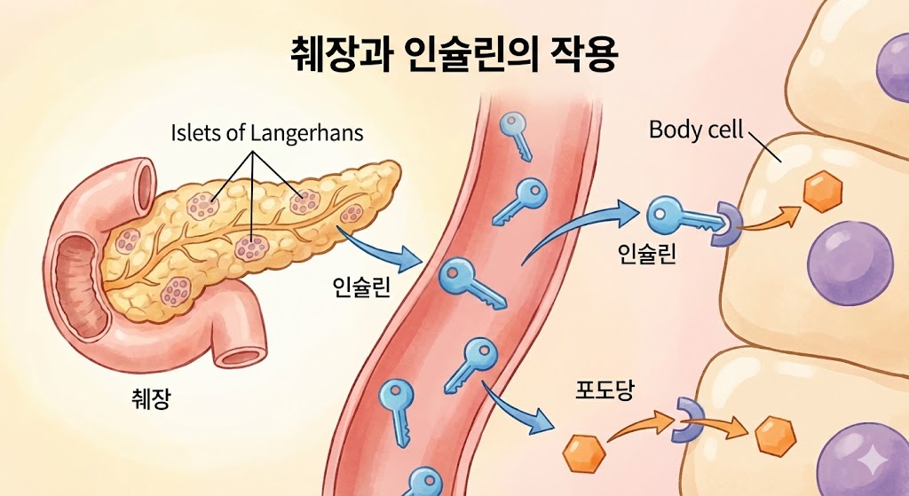 췌장은 혈당을 조절하는 인슐린을 분비하는 중요한 장기이기도 합니다. 따라서 췌장에 암세포가 생기면 인슐린 분비에 문제가 생겨 당뇨병이 발생하거나, 기존에 당뇨를 앓고 있던 분들의 혈당 조절이 갑자기 어려워질 수 있습니다.