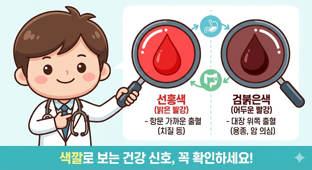 많은 분들이 화장실에서 피를 보면 덜컥 겁부터 먹거나, 혹은 "치질이겠지" 하고 방치하곤 합니다. 여기서 중요한 건 피의 색깔을 구별하는 거예요. 치질이나 항문 질환의 경우 보통 선명한 붉은색(선홍색) 피가 휴지에 묻어나는 경우가 많습니다.