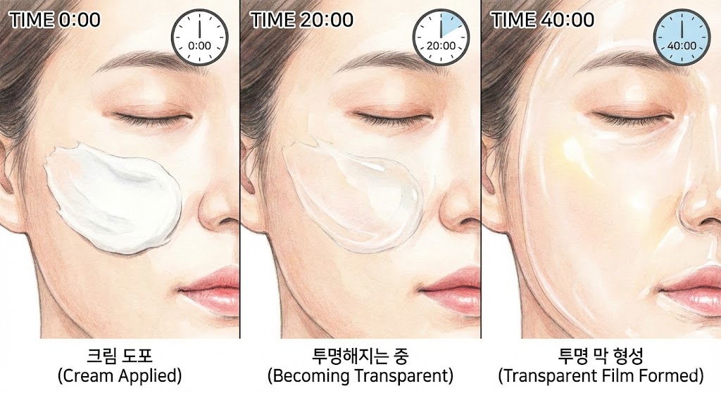 - 충분한 건조 시간: 보통 30~40분 정도 소요되지만, 피부 상태나 습도에 따라 다를 수 있어요. 손으로 만졌을 때 묻어나는 것 없이 팽팽하게 막이 생길 때까지 충분히 기다려주세요.