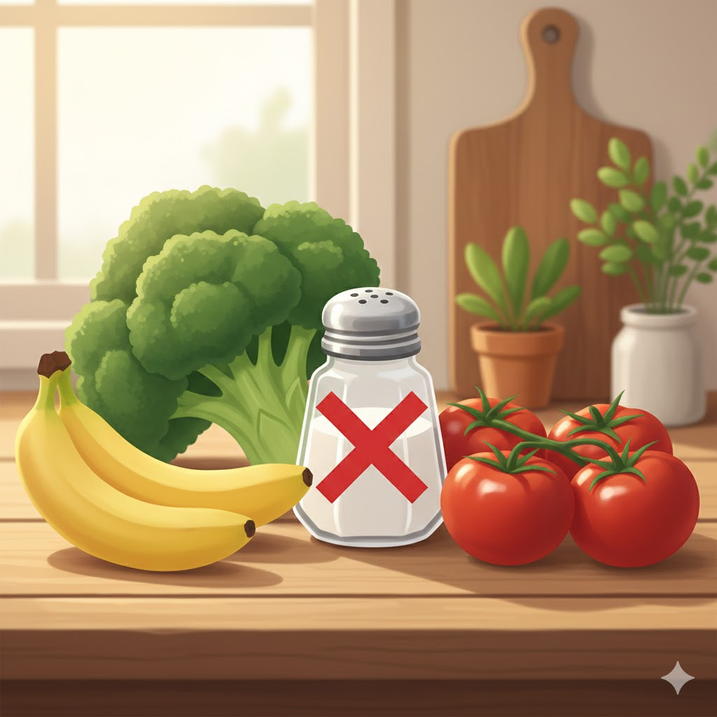 1. 식탁 위의 변화: 나트륨 줄이기 우리나라 사람들은 국물 요리를 좋아해서 나트륨 섭취량이 높은 편이에요. 소금은 체내 수분을 잡아두어 혈액량을 늘리고 혈압을 높이는 주범입니다. 국물은 건더기 위주로 먹고, 칼륨이 풍부한 채소와 과일을 섭취해 나트륨 배출을 도와주세요.