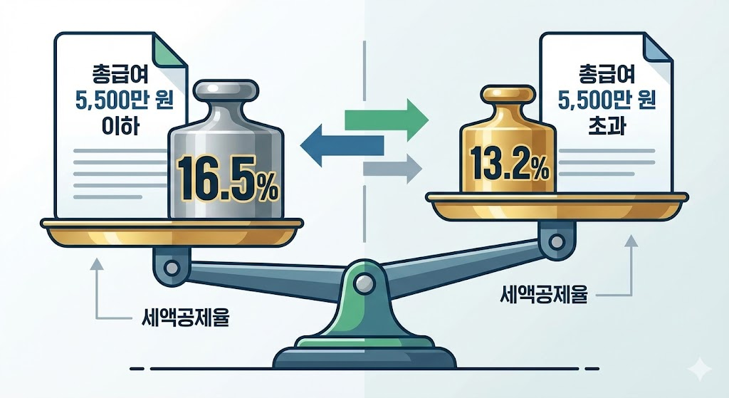 - 총급여 5,500만 원 이하: 16.5% 공제 (최대 148만 5천 원 환급)