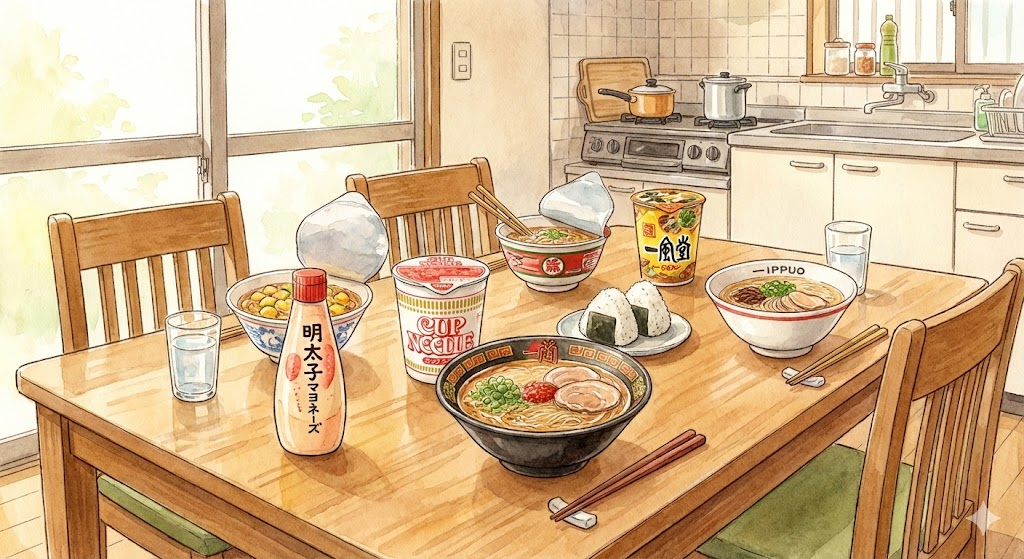 인스턴트 라면 및 소스 일본 라면의 맛을 집에서도 느끼고 싶다면 유명 라멘 체인점의 인스턴트 키트를 구매해 보세요. 그리고 튜브형으로 된 명란 마요네즈나 빵에 발라 굽기만 하면 되는 스프레드 종류는 아침 식사를 행복하게 만들어 줄 거예요.