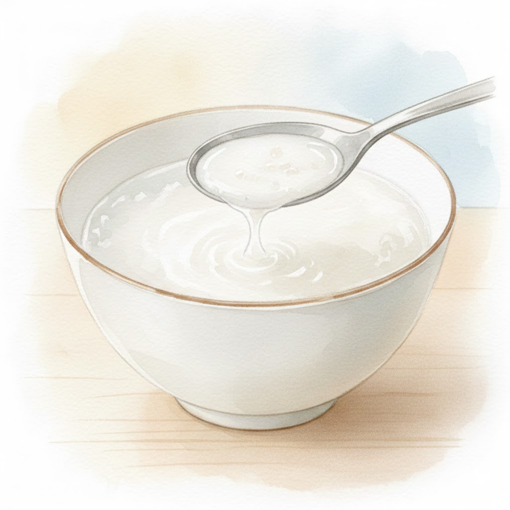 쌀은 주성분이 탄수화물이라 소화 흡수율이 매우 높고, 장내 가스 발생을 줄여줍니다. 처음에는 쌀알이 거의 씹히지 않을 정도의 묽은 미음으로 시작해서, 상태를 보며 점차 밥알이 있는 죽으로 농도를 조절해 나가는 단계적인 접근이 필요해요.