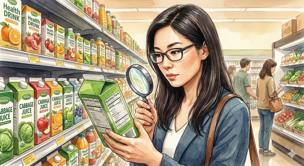 하지만 "몸에 좋으니 무조건 많이 먹자!"는 위험할 수 있어요. 양배추즙을 고를 때와 마실 때 몇 가지 주의사항을 꼭 기억해야 합니다.