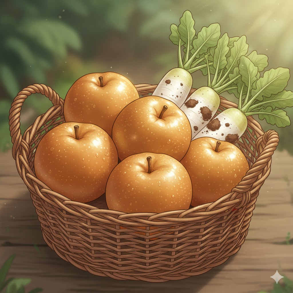 기관지에 좋은 음식을 이야기할 때 절대 빠질 수 없는 것이 바로 **'화이트 푸드'**입니다. 한의학에서도 흰색 음식은 폐와 기관지를 돕는다고 보는데요, 대표적으로 배와 무가 있습니다.