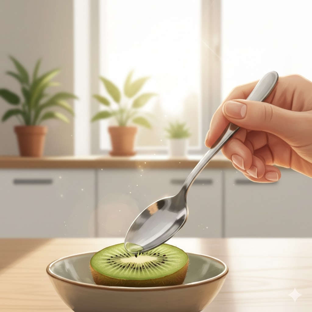 키위가 특별한 이유는 **'액티니딘'**이라는 천연 단백질 분해 효소 때문입니다. 이 효소는 소화를 돕고 장내 환경을 개선해 줍니다. 실제로 만성 변비 환자들이 매일 키위 2개를 섭취했을 때 배변 횟수와 변의 형태가 뚜렷하게 좋아졌다는 연구 결과도 있답니다. 반으로 잘라 숟가락으로 떠먹기도 간편하니 아침 대용으로 딱이죠?